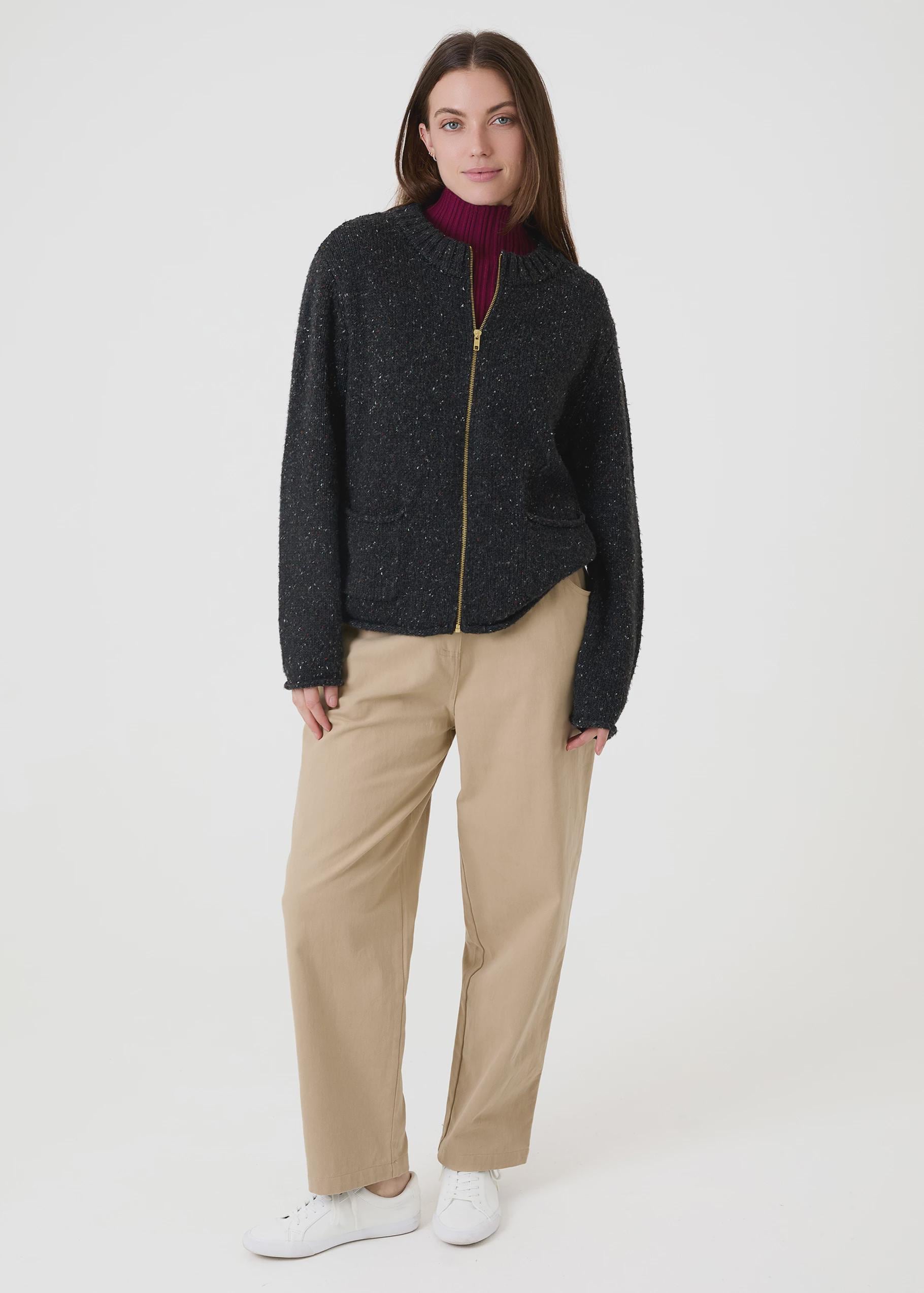 An easy, throw-on cardigan designed for everyday wear. This soft nep boxy cardigan features a clean zip-front fastening and a relaxed, modern shape that works effortlessly over layers. The subtle nep texture adds depth and interest without being fussy.