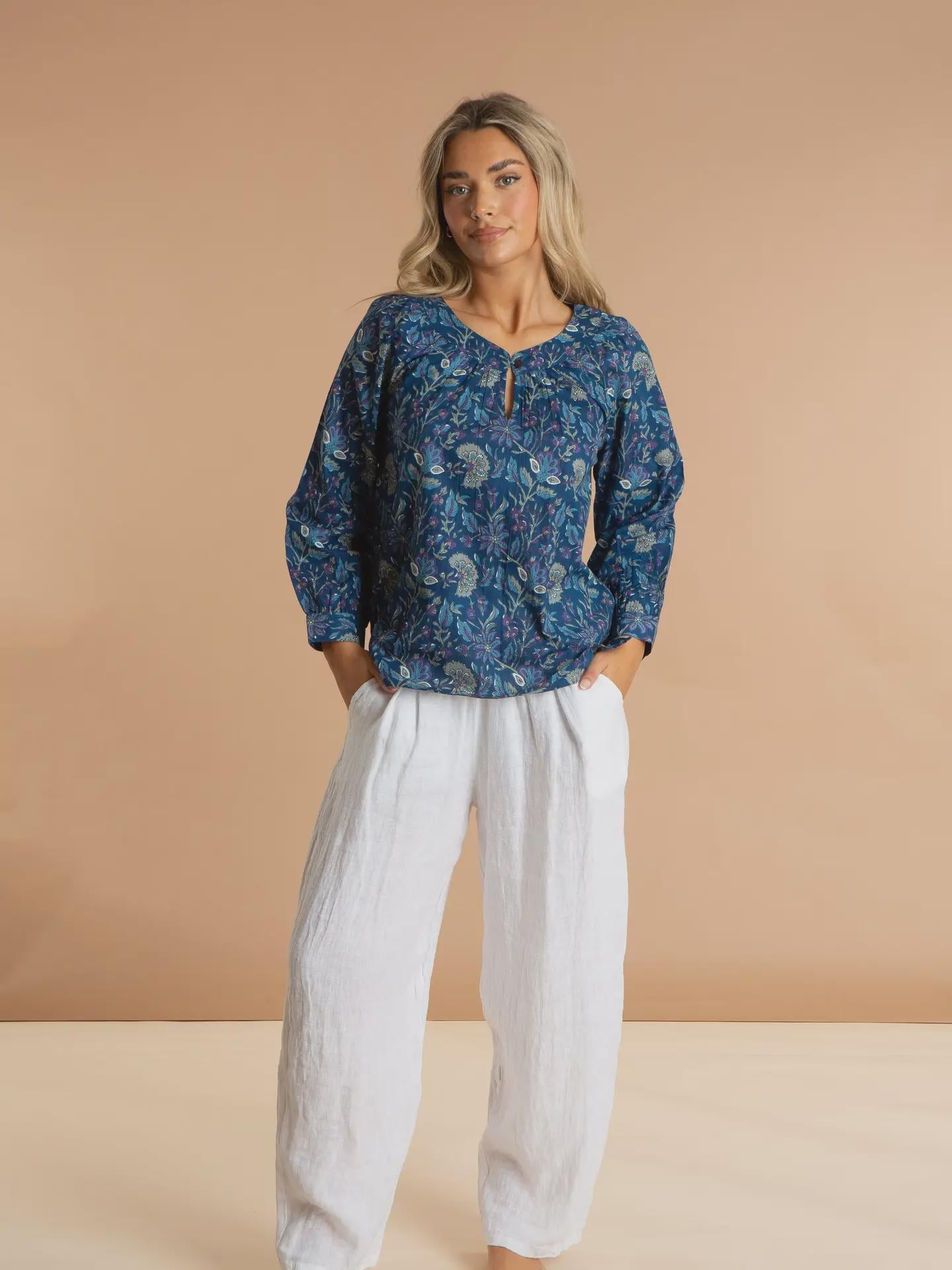 Inspired by the striking blue tones of Icelandic crystal glaciers, this printed ladies’ top brings effortless style and colour to everyday dressing. Crafted from soft, breathable 100% cotton, it’s designed for comfort without compromising on impact.