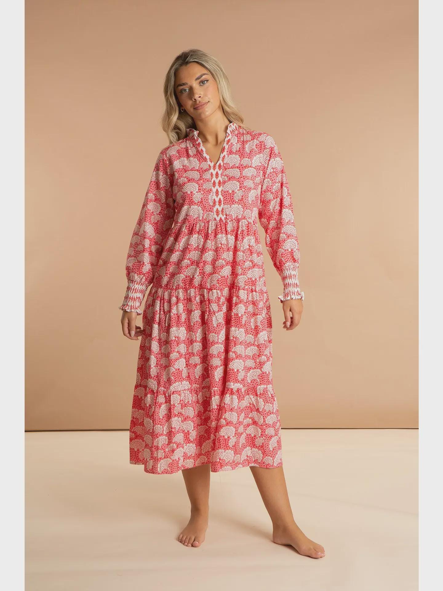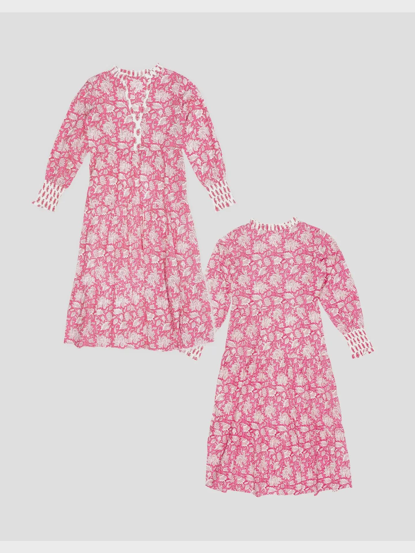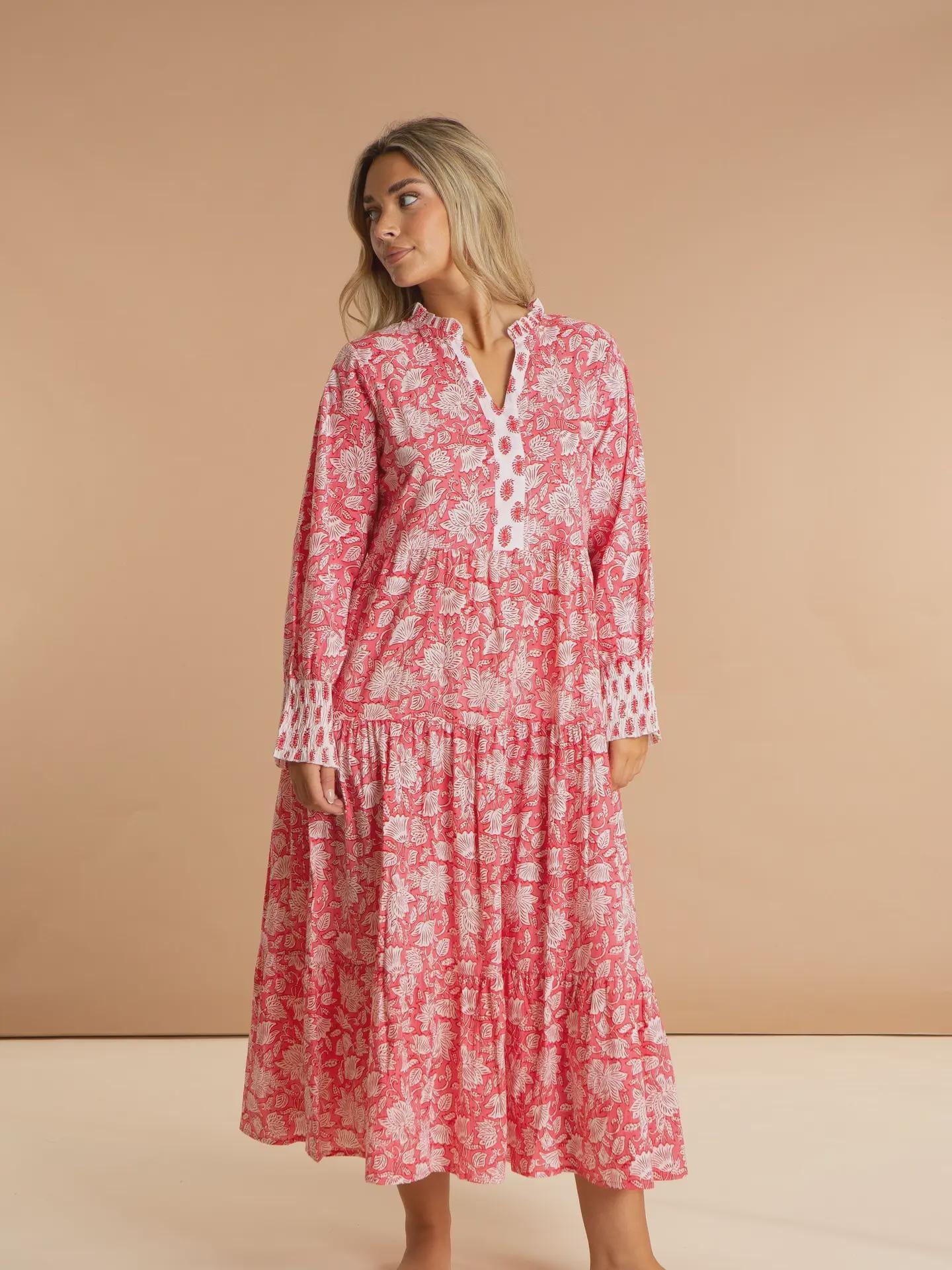 Inspired by the rich floral heritage of traditional Kashmiri shawls, the Peony Paisley Maxi Dress brings colour, movement and effortless elegance to warm-weather dressing. Featuring a beautiful all-over print in soft pink tones, it’s designed to feel relaxed yet feminine.