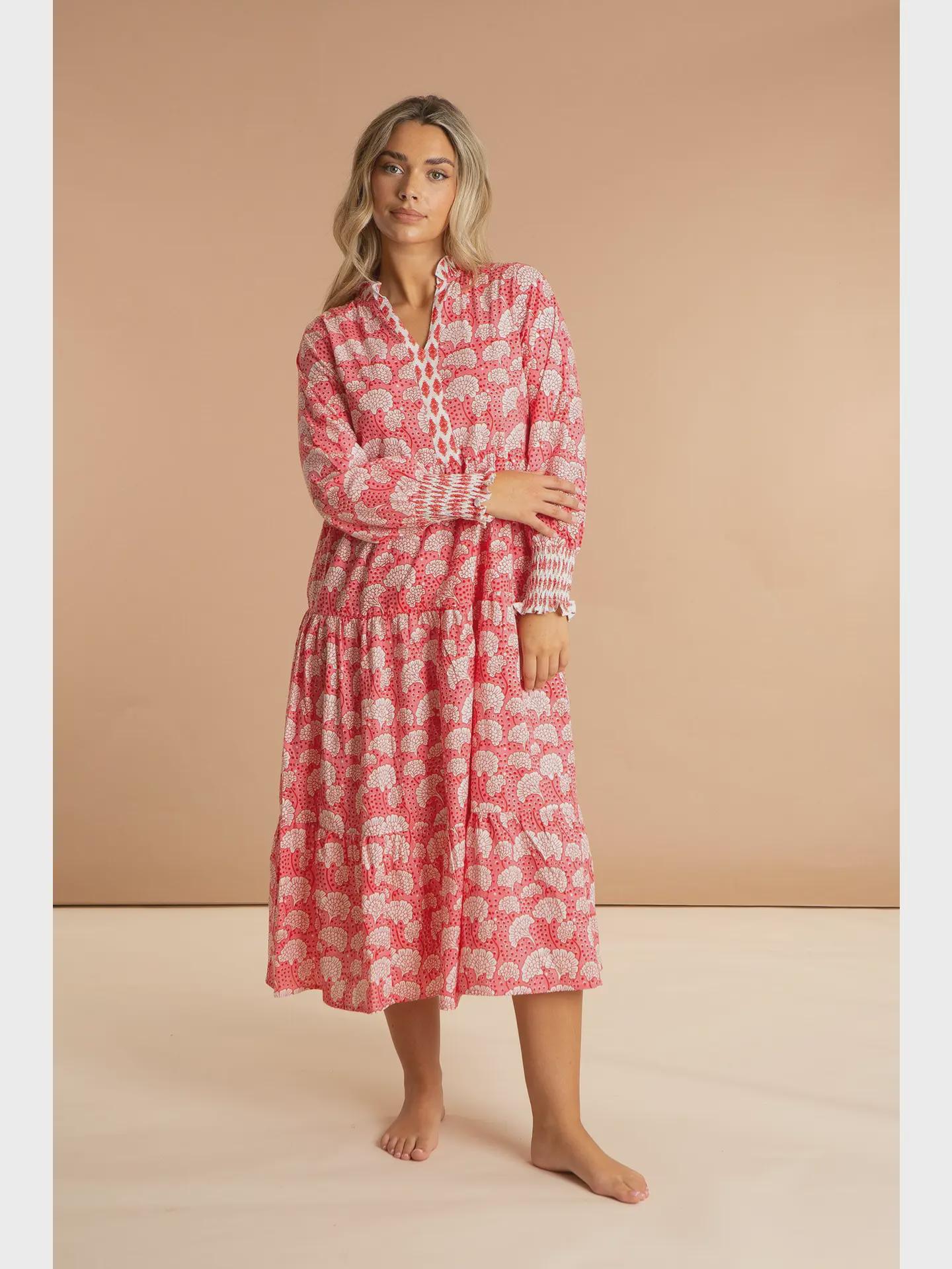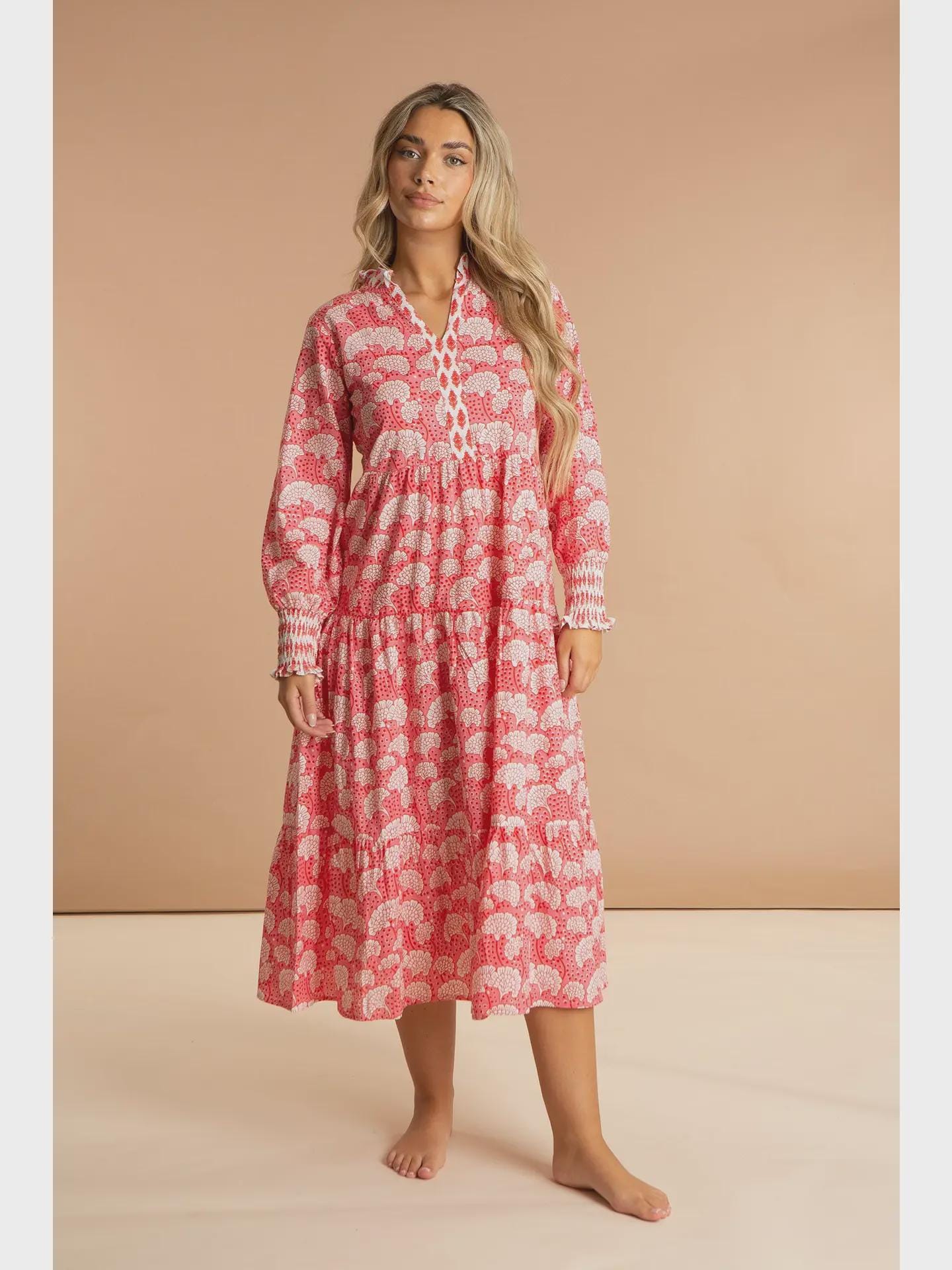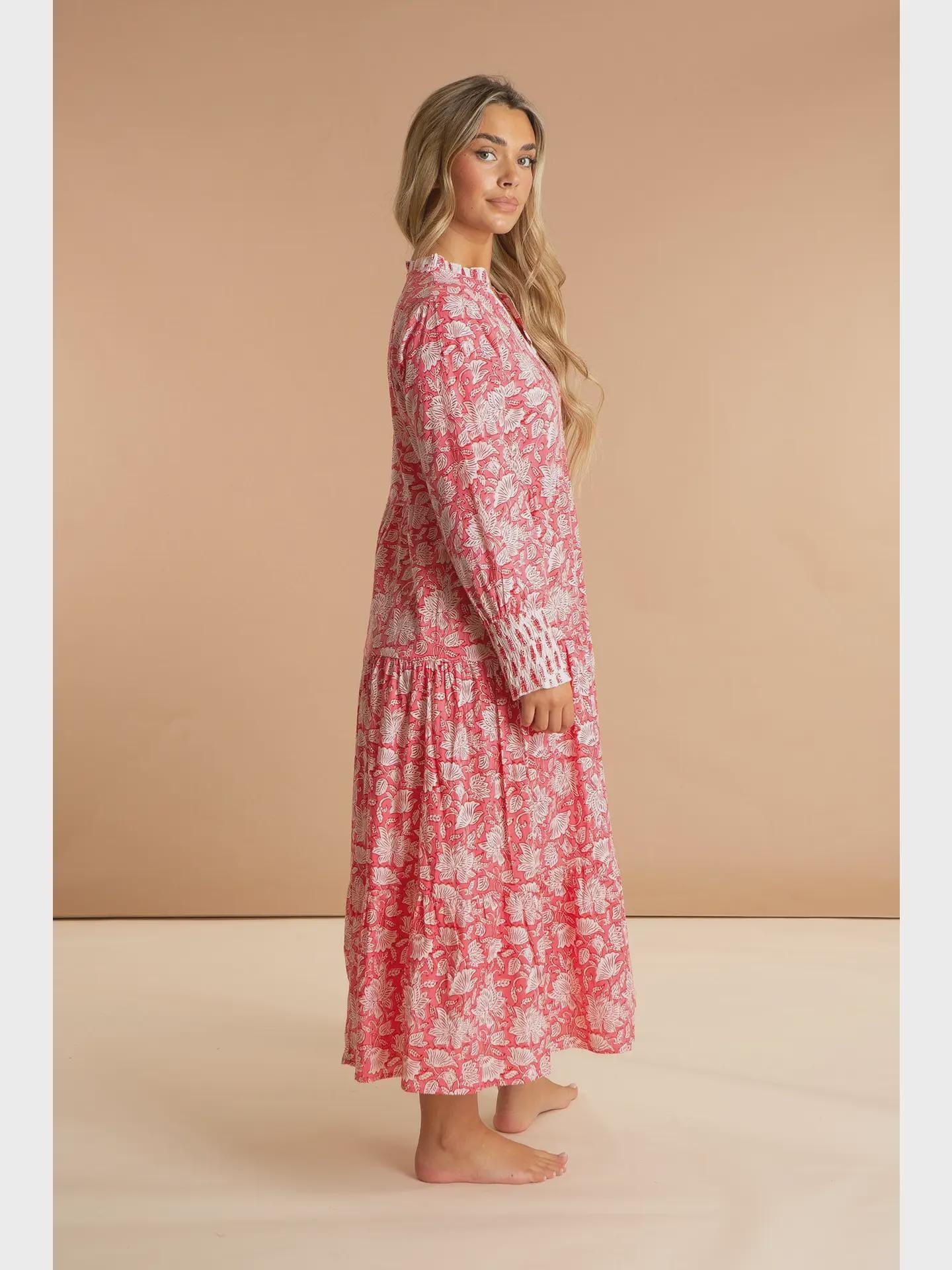 Inspired by the rich floral heritage of traditional Kashmiri shawls, the Peony Paisley Maxi Dress brings colour, movement and effortless elegance to warm-weather dressing. Featuring a beautiful all-over print in soft pink tones, it’s designed to feel relaxed yet feminine.