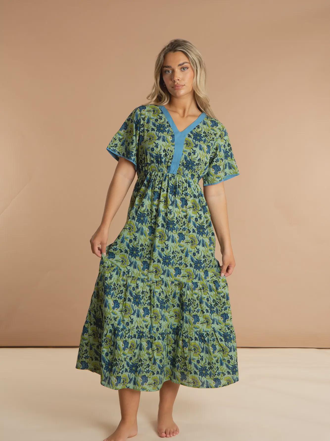 Crafted from soft, breathable 100% Indian cotton, this dress is carefully printed and pre-washed for a beautifully comfortable, luxury feel. The relaxed silhouette makes it perfect for summer days — whether you’re heading out for lunch, strolling on holiday or enjoying time with friends.
