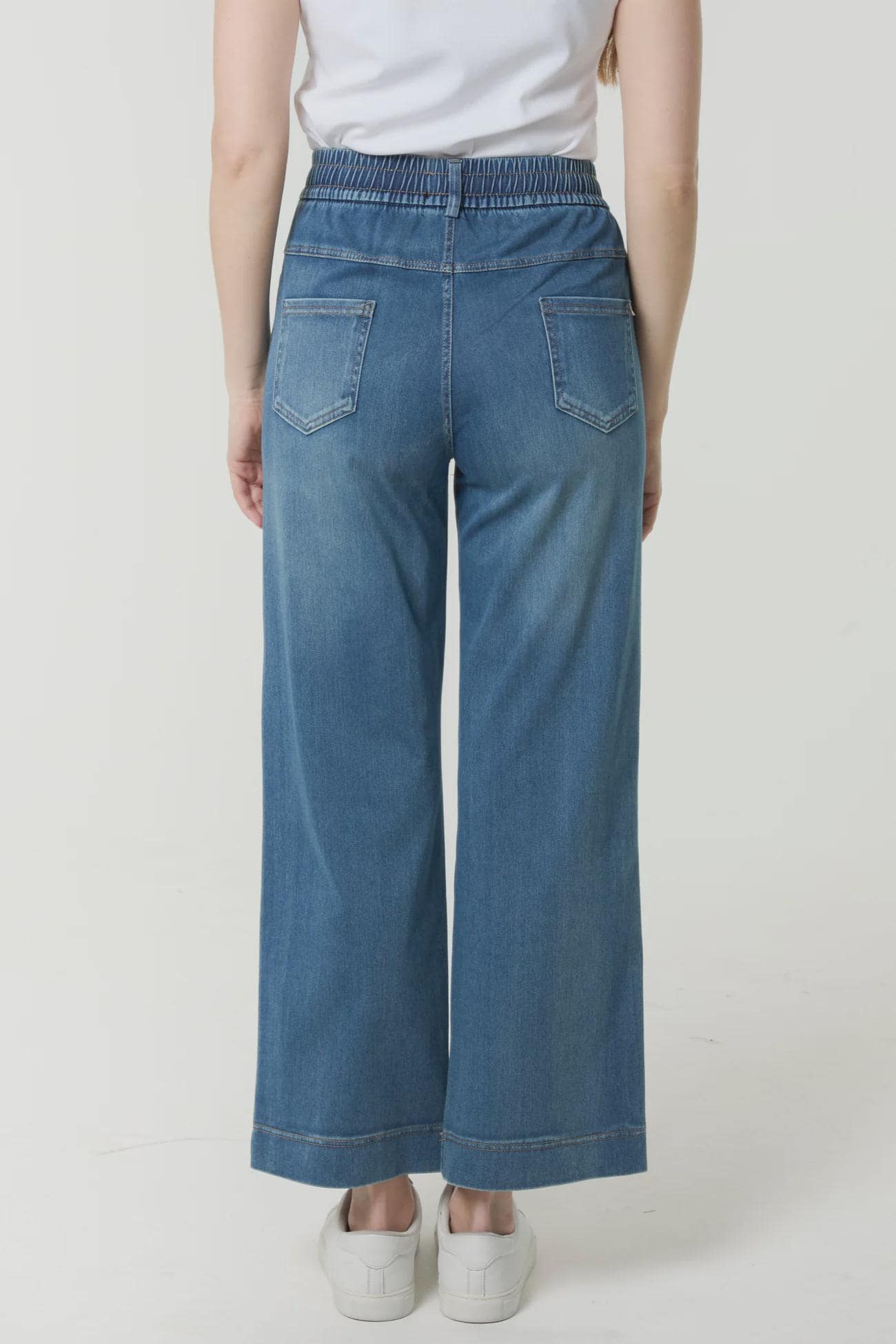 Designed for comfort with a clean, modern finish, our Elastic Waist Wide-Leg Denim Trousers are an easy everyday staple. Featuring a softly elasticated waistband for a flexible fit, these trousers offer effortless wear while maintaining a flattering wide-leg silhouette.