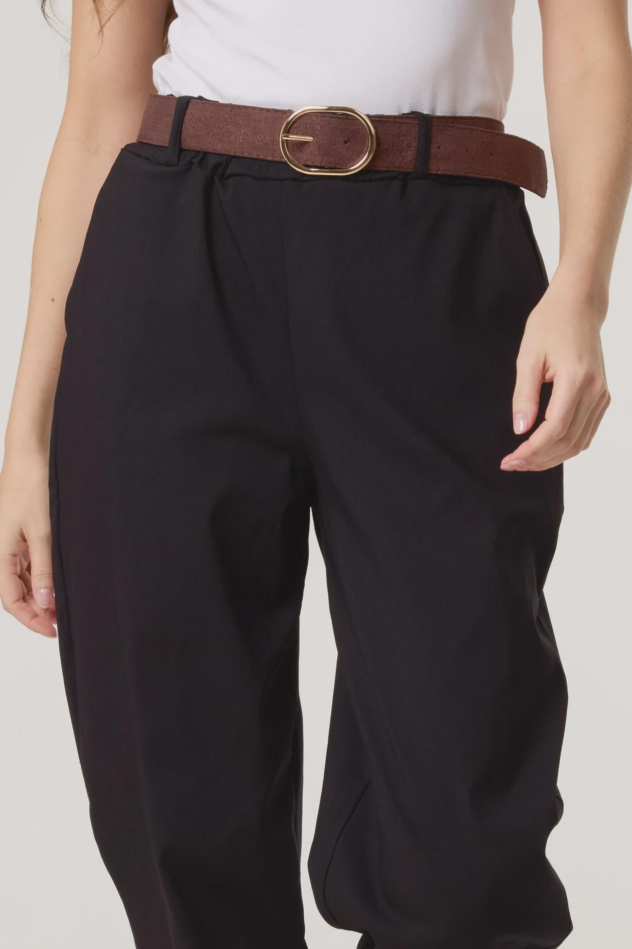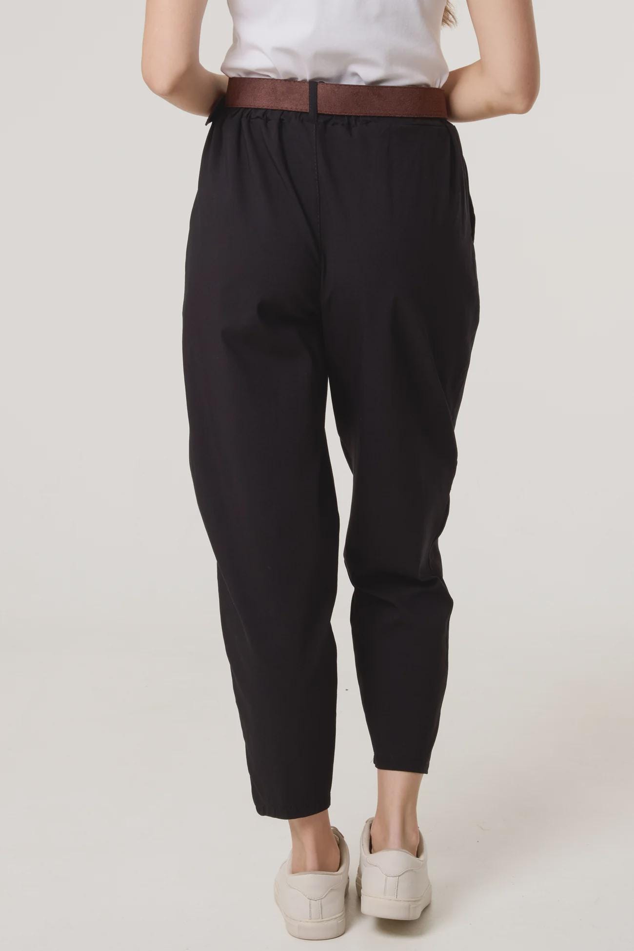Our Bengaline Barrel Leg Magic Trousers in classic black are a wardrobe essential designed to flatter, move and adapt effortlessly. Featuring a relaxed barrel-leg shape with a softly elasticated waistband, they combine everyday comfort with a polished, easy-to-wear silhouette.