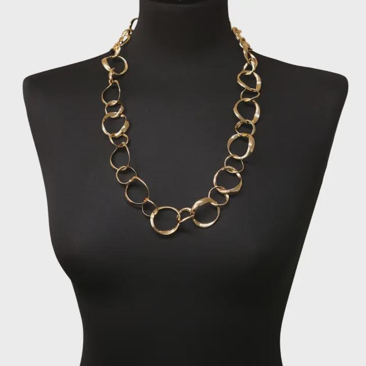 Make a bold yet elegant statement with this chunky gold link necklace. Featuring oversized polished circle links, this modern chain necklace adds instant sophistication to any outfit. The high-shine gold finish reflects light beautifully, making it the perfect statement accessory for both everyday wear and special occasions.
