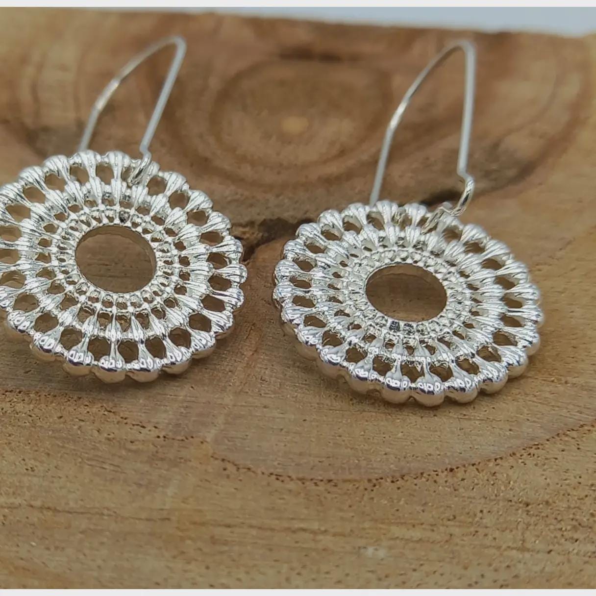 Add a delicate touch of elegance to your look with these silver filigree circle drop earrings. Featuring a beautifully detailed openwork pattern, these earrings showcase an intricate circular design that blends vintage charm with modern style.