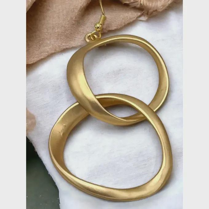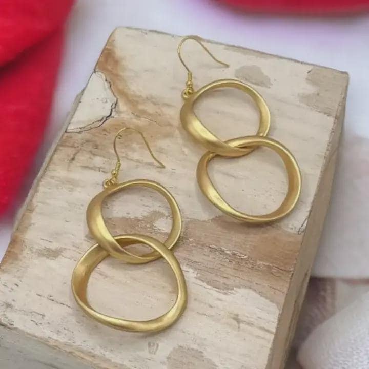 Add a modern and elegant touch to your style with these gold double circle dangle earrings. Featuring two beautifully interlocking textured rings, these earrings create a bold yet minimalist statement. Their sleek geometric design makes them a versatile accessory that pairs perfectly with both casual outfits and special occasion looks.