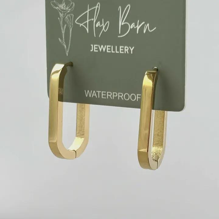 Upgrade your everyday style with these tarnish resistant oblong huggie earrings. Designed with a sleek rectangular hoop shape, these minimalist earrings offer a modern twist on classic gold hoops.