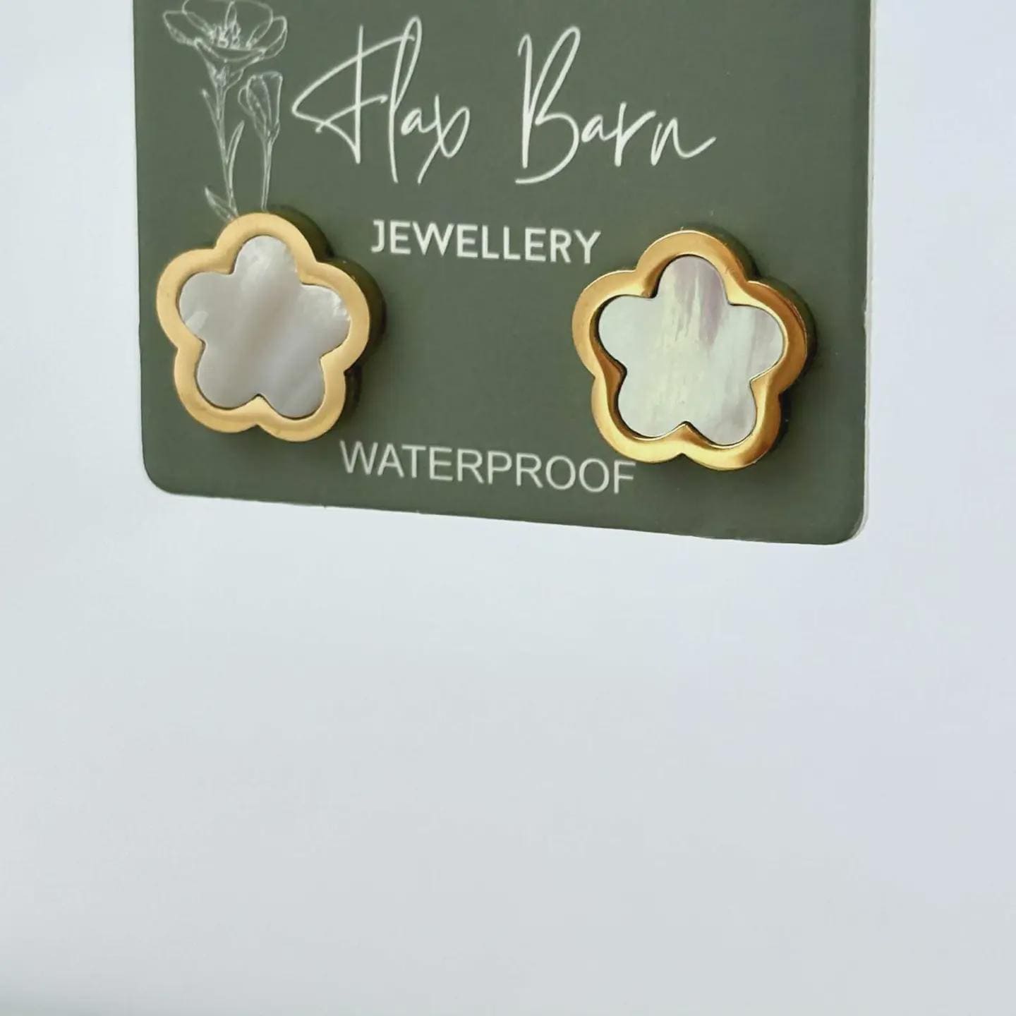 Add a touch of delicate elegance to your everyday look with these beautiful Pearlescent Shell Flower Studs. Designed with a polished gold-tone outline and a luminous shell center, these earrings offer a timeless floral style that complements both casual and dressy outfits.