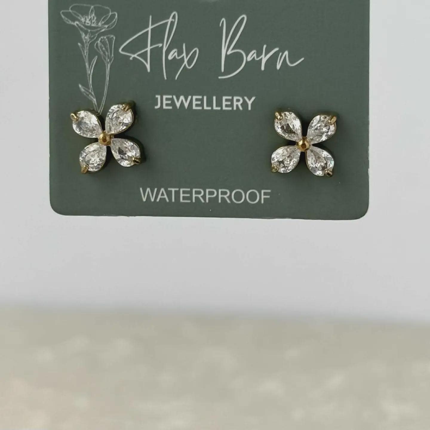 Add a touch of sparkle and elegance to your look with these tarnish resistant flower zirconia stud earrings. Designed with delicate four-petal flowers set with brilliant zirconia stones, these studs offer a timeless and feminine style that works beautifully for both everyday wear and special occasions.